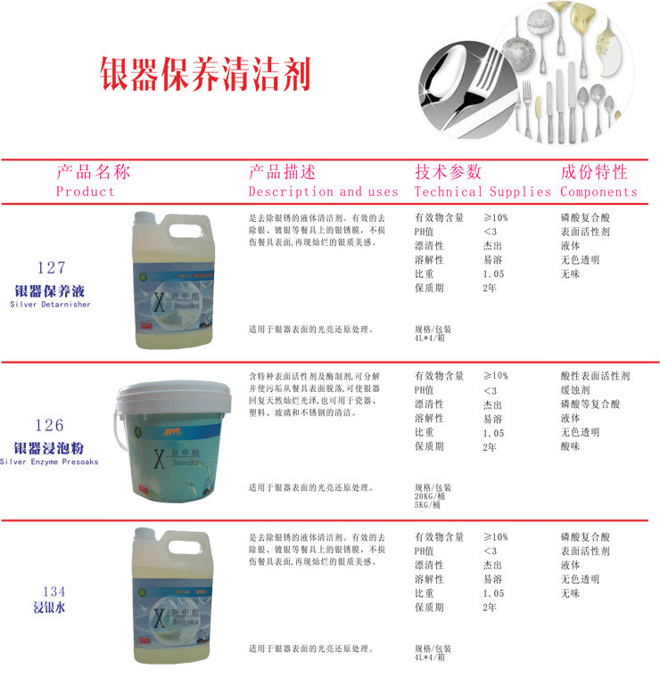 | WE134 浸銀水 | WE127 銀器保養(yǎng)液 | WE1101 烤爐凈 |